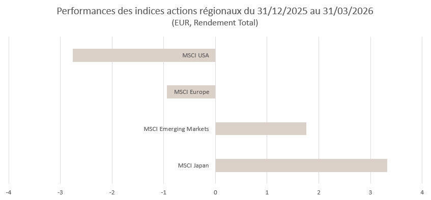 Sur les marchés financiers, le premier trimestre 2026 se distingue avant tout par une rotation marquée des performances, tant sur le plan géographique que sectoriel et de style.