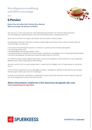 Sparen Sie mit S-Pension für morgen und profi tieren Sie schon heute von Steuervorteilen.