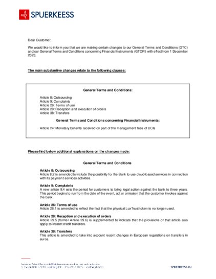 A new article 9.4 sets the period for customers to bring legal action against the bank to three years. This period begins to run from the date of the event, act or omission that the customer invokes against the bank. - Article 26: Terms of use