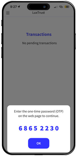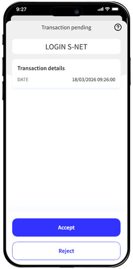 LuxTrust Mobile will then display the context (for example: S‑Net login, transfer validation, etc.).
