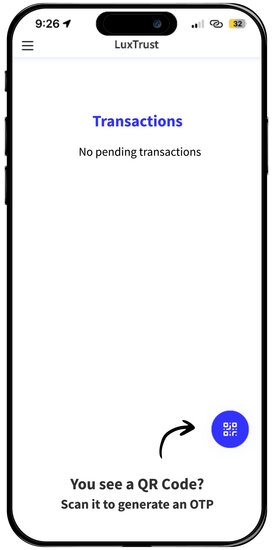 Open the LuxTrust Mobile app and select the “Scan” option located at the bottom right of the screen.