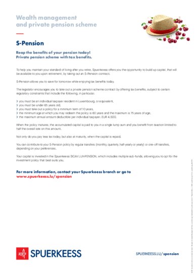 S-Pension allows you to save for tomorrow while enjoying tax benefits today.