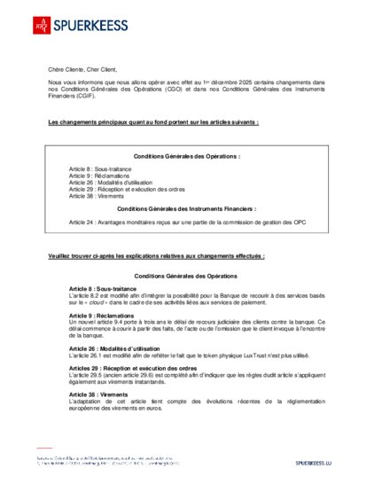 Conditions Générales des Opérations de Spuerkeess (valables à partir du 01.12.2025) - Les changements principaux