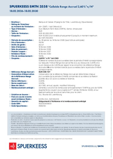 SPUERKEESS EMTN 3558 « Callable Range Accrual 2,60%*n/N »