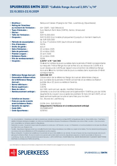 SPUERKEESS EMTN 3551 « Callable Range Accrual »