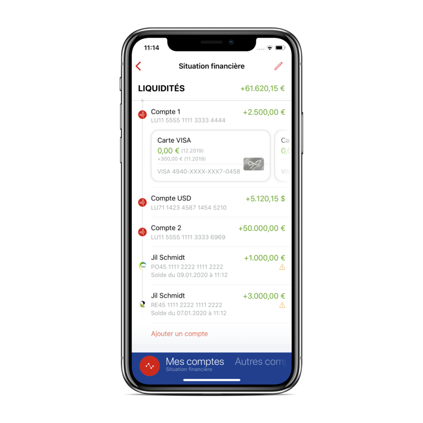 Visualisez en un coup d’œil les soldes de vos comptes, prêts, cartes de crédit et compte-titres ainsi que la situation des comptes que vous détenez auprès d’autres banques.
