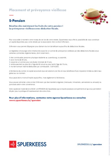 S-Pension vous permet d'épargner pour demain tout en bénéficiant aujourd'hui de déductions fiscales.