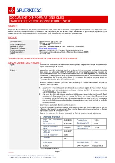 PRIIPs Documents d'informations clés pour EMTNs